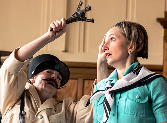 Mesdames et Messieurs der vornehmen, exklusiven und kunstverständigen Runde treffen hier aufeinander und diskutieren und philosophieren über antike und zeitgenössische Kunst. Alle feiern ausgelassen, bis Madame La Voyante die überraschende Nachricht bekannt gibt, dass die berühmte „Mona Lisa“ nicht echt sei. Empörung geht durch die Reihen. Die Polizei wird gerufen um das Ganze aufzudecken.